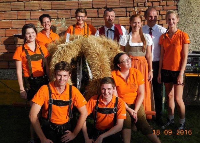 Wenn man die Musikanten in Dirndl und Lederhos´n sieht, statt in der bekannten Uniform, weiß man, das Erntedankfest im Hof des Heurigen Hauer steht vor der Tür!